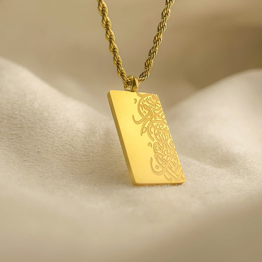 Stay reminded of Allah's guidance during life's challenges with our stylish Arabic calligraphy necklace. It symbolizes the presence of both ease and hardship, reminding us to be grateful and trust in Allah's provision.